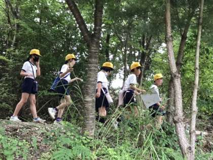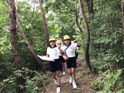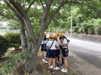 少し薄暗い道は怖いようでした。けれども、友達と一緒だから探検に出掛けられます。
