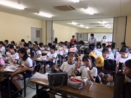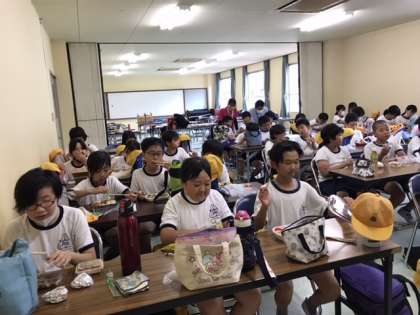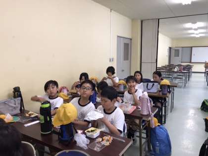 フィールドサーチの途中でも「早くお弁当食べたい」と言っていました。おなかぺこぺこ。お家の方に作ってもらったお弁当をあっという間に食べてしまいました。