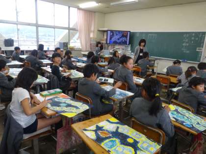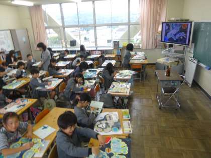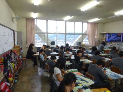 どの子も色を工夫し、黙々と画用紙に向かっていました。完成が楽しみです。