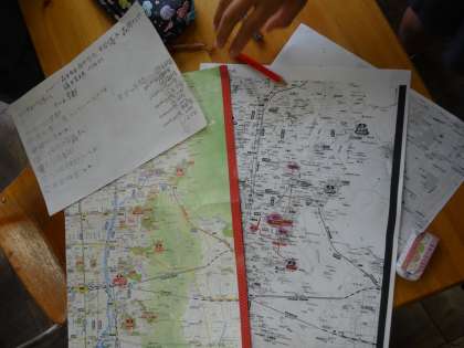 修学旅行に向けて、地図とにらめっこし、地図に書き込み、話し合いを進めていました。