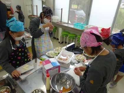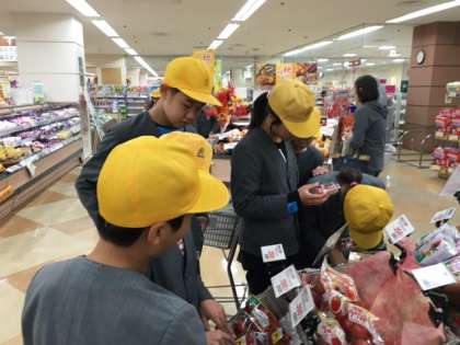 それぞれ各班ごとで相談し、お弁当のおかずの買い物・調理を協力しながら取り組みました。