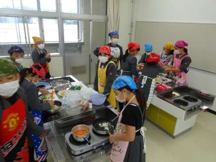 班ごとで、料理の手順や役割も考え、スムーズに調理できていました。とてもおいしそうなお弁当ができたようです。