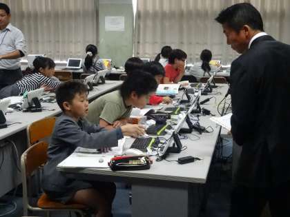 11月6日(金) 写真上 4A 社会 パソコン 写真下 4B 国語