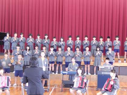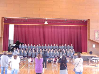 最初に、明日の伊都地方小中合同音楽会で発表する合奏・合唱を鑑賞していただきました。