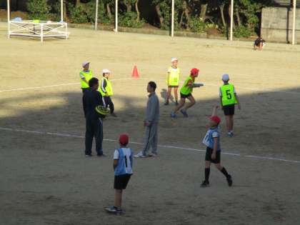 11月16日(月) 球技 運動場での「ドッジビー」の練習とゲーム