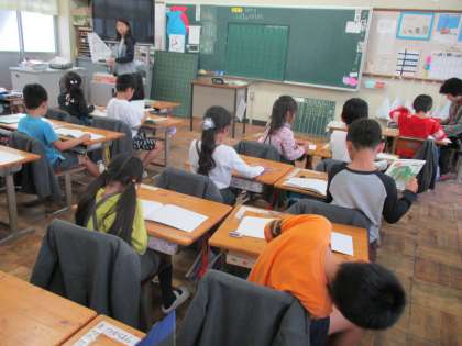 算数の復習をしていました。給食前でも、しっかり取り組んでいます。