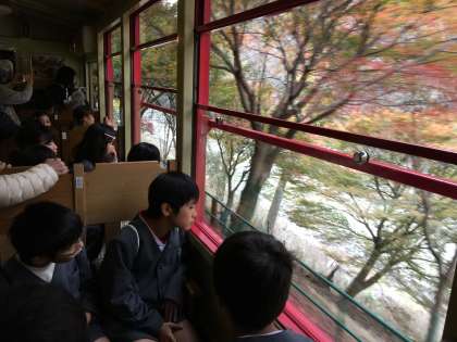 亀岡駅から嵯峨まで、トロッコ列車で保津峡の景色を楽しみました。
