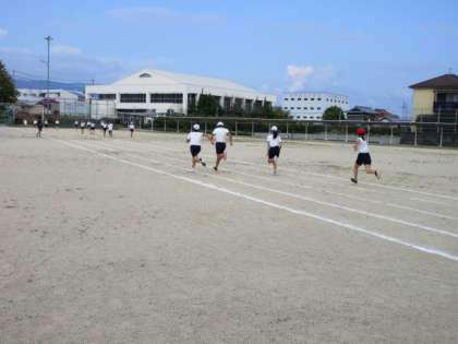 陸上記録会を来月に控え、陸上種目の体育に取り組んでいます。