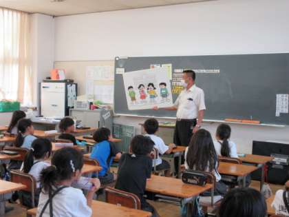 和歌山県から警察の方に来てもらい、「いやなおもいをさせる」というテーマでお話をしてもらいました。身近な問題から善悪を考え、相手、その家族を悲しませることがあることを学びました。