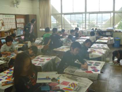 2A 図工 「クリスマスプレゼントのつつみがみをかこう」