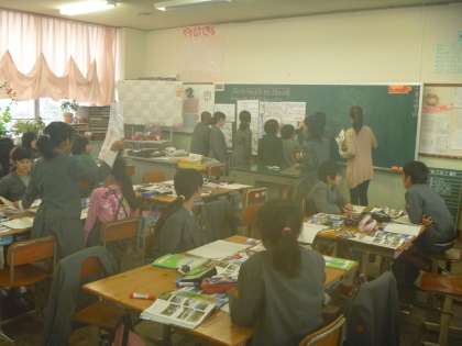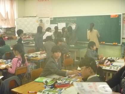 班で話し合い、ホワイトボードにまとめ、みんなで確かめ合いました。