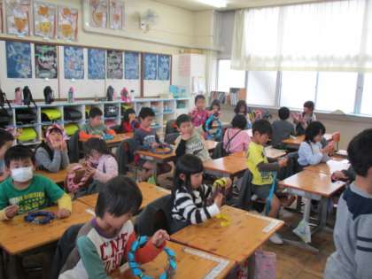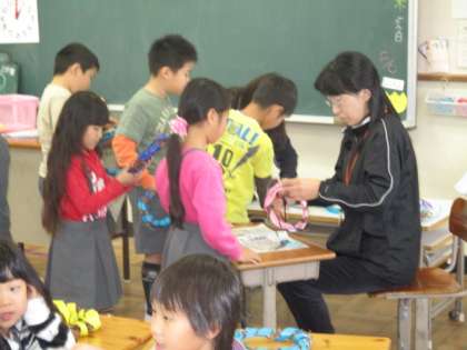 自分好みのリボンごとに、順にリボンを巻き付けたようです。