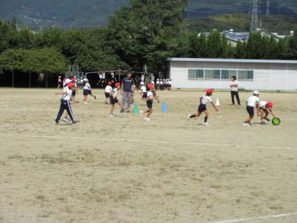3年生は体育でアルティメット(フリスビーを使ったスポーツ)をしています。