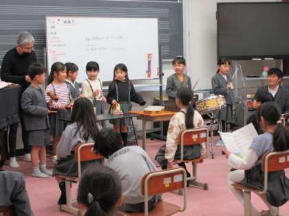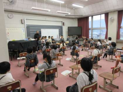広い教室とたくさんの楽器、いつもと違う音楽に子供たちは、目をキラキラさせながらたのしく活動しました。