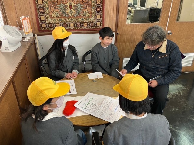5年生は、秋に地場産業である織物工場やパイル織物を見学しました。そこで学んだことをポスターにし、本日工場へ持っていきました。町の人へのアンケートや、自分たちが考えた地場産業を使った商品についてお話をしました。工場の方もお忙しい中でしたが、快くお話を聞いてくださいました。ありがとうございました。
