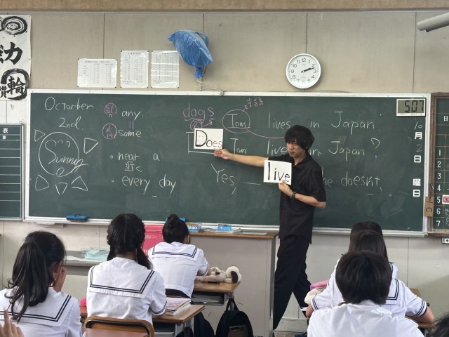 C組は英語の授業で、Doesを使った疑問文について学んでいました。