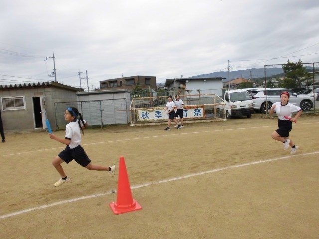 3学年が協力してバトンパスもうまくいき、素晴らしいリレーとなりました。