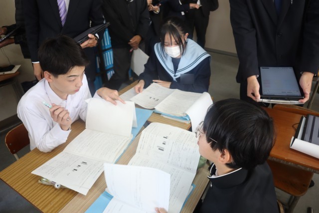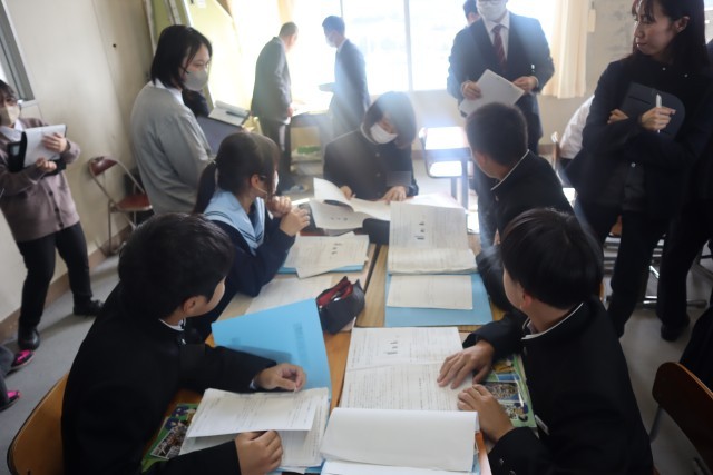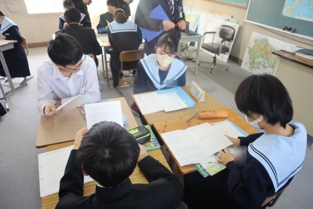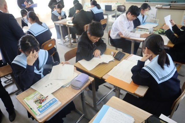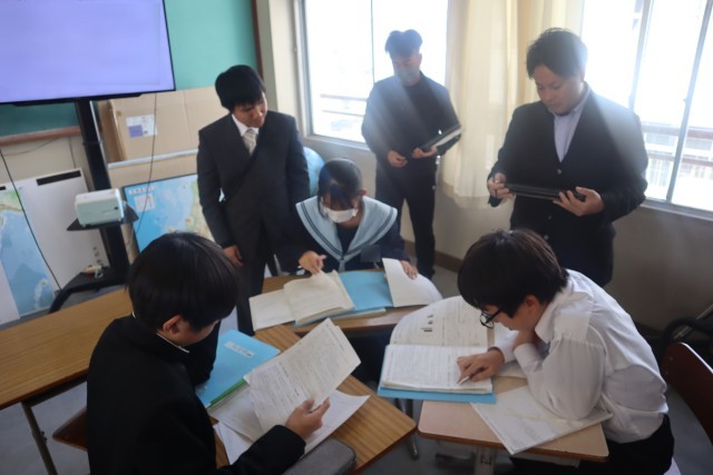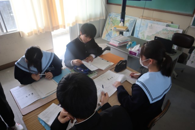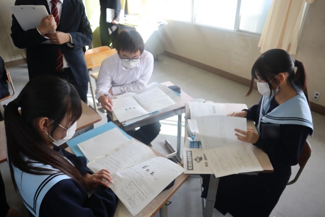 京都の景観規制に関して資料を読み、様々な立場から意見を出し合い共有し、グループで発表を行いました。