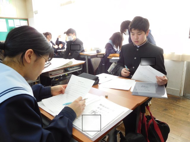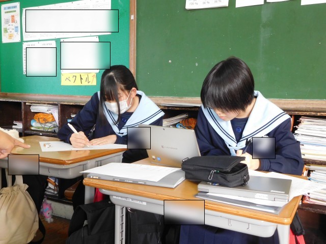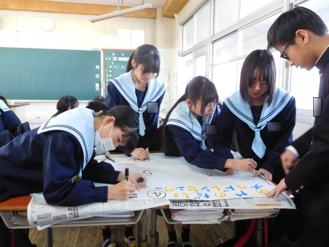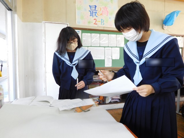 総合の様子です。総合では職場体験のまとめをしています。各グループが工夫を凝らし、それぞれ協力して進めています。