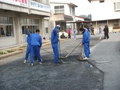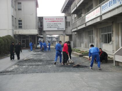 明日は卒業式です。 野球部、男子ソフトテニス部・バレー部・ソフト部・バスケット部のみんなさんできれいに整地してくれました。 大変きれいになりました。
