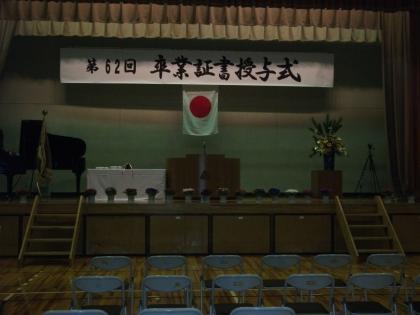 明日は、平成22年度の卒業式となります。2年生が体育館・1年生は校舎周辺を担当し、会場準備も全て終わりました。、明日はすばらしい卒業式になることを願っています。