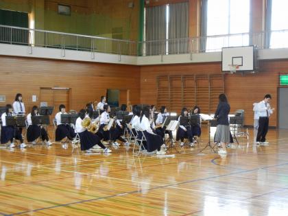 部紹介のトップバッターは吹奏楽部の演奏でした。みんな聞き入っていました。
