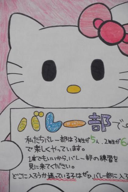 先日体育館でクラブ紹介を行いその後クラブ登録をしました。一旦入部届けを提出し、しばらく移行期間としています。生徒玄関や校舎の掲示板にクラブの募集ポスターを貼っています。その一部です。