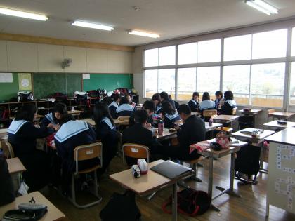 4月18日(月)昼食時の様子です。みんな楽しそうにお弁当を食べています。