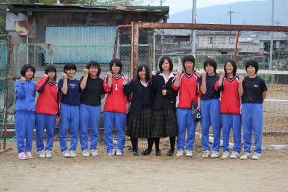 明日から和歌山県中学校ソフトボール選手権大会が始まります。天候が心配されますが、昨年の準優勝をこえられるようがんばりたいです。卒業生(一昨年度の主将・副主将)が応援にかけつけてくれ、激励の一言をもらいました。