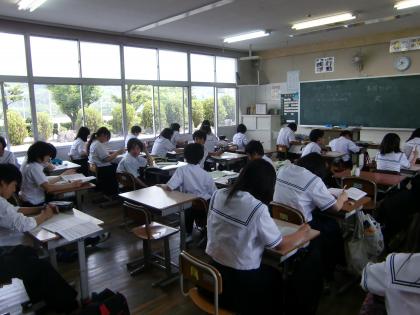 6月6日(月)6限目、基礎総合の時間に漢字の書き取りをしました。最初に漢字を練習プリントに何度も書いて学習し、その後テストをするという時間です。テストの答案用紙は生徒同士交換し、お互いの答案用紙を○つけし合い、間違いの箇所を自分たちでアドバイスしあって、お互い学習できるようになっています。