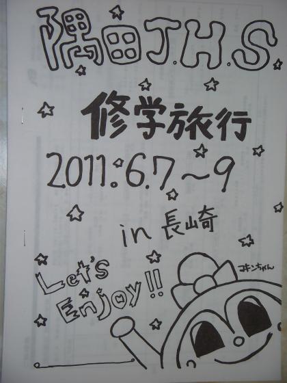 3年生は、明日6月7日〜6月9日まで九州方面(長崎)へ修学旅行に行きます。行きは、新大阪より新幹線で博多まで、帰りは長崎空港から飛行機で伊丹空港に帰ってくる予定です。これまでに学級会活動や学年会を通して事前学習(平和学習・班別行動)をしてきました。修学旅行の目的は【平和学習】【自主活動】【思い出作り】です。意義ある思い出に残るすばらしい修学旅行になることを願っています。