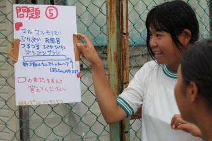 ミッション1は、校内にはられた10コのクイズを探し出して全てに正解しなければいけませんでした。問題がなかなか見つからず、見つかっても答えがわからない・・・ここまでかと思われたところで、最後の問題を探してきて正解したのは、1年生でした。