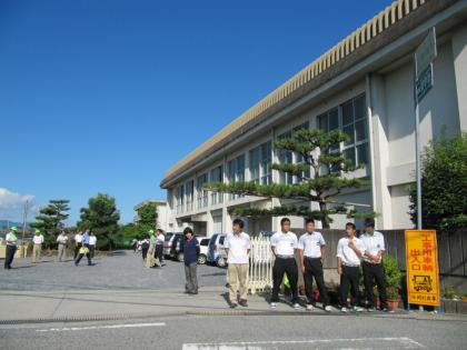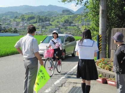 今朝、生徒会はあいさつ運動及び交通安全指導をしました。