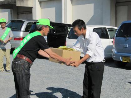 生徒会 校門でのあいさつ運動と贈呈式