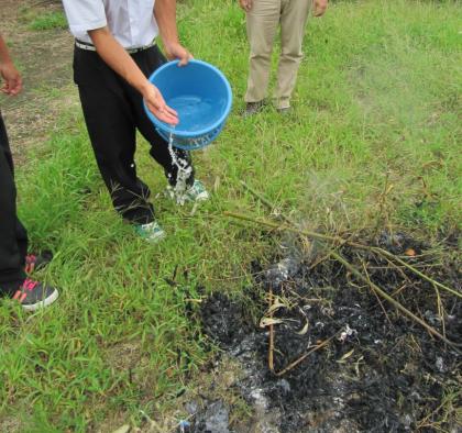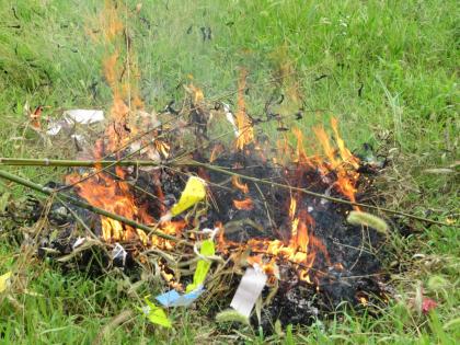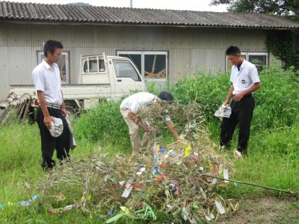 その後、みんなの願いごとや被災地への思いがつづられた短冊がつるされていた笹飾りを燃やして、願いを天に届け、本日の活動を終えました。