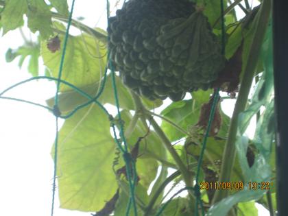 個別学級で育てていた緑のカーテンに、ゴーヤがなりました。