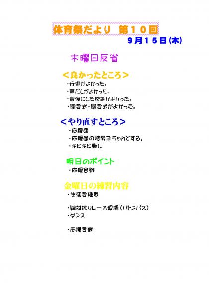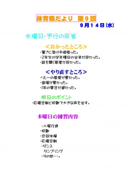 予行練習の日と、その前後の日の体育祭実行委員会だよりです。