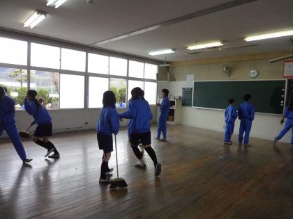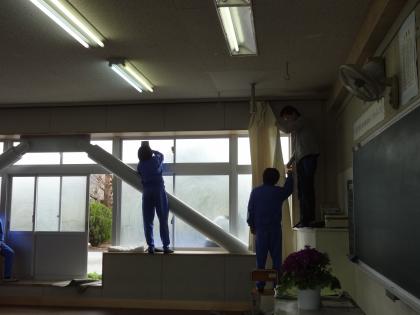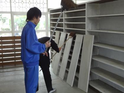 教室は、ワックスがけをするため、机やいす等、すべてのものを廊下に出します。
