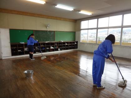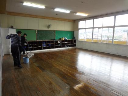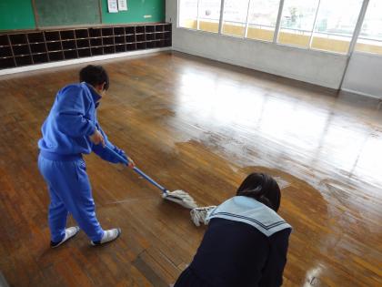 3月22日(木)放課後 大掃除後委員による各教室ワックスがけ