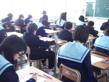 4月17日(火) 1年生は午前中新入生テストです。中学校に入っての最初のテストです。やや緊張気味ですが、みんな真剣に取り組んでいます。