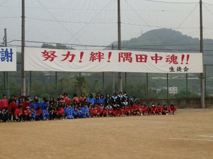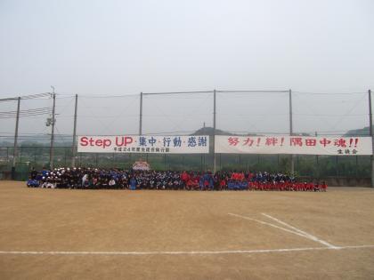 昨日の放課後、各部活動の生徒がグラウンドに一同に集合し、新しく掲げられた横断幕の下で記念撮影を行いました。この生徒会目標を一人ひとりが心に留め、より良い学校づくりに向けて取り組んでいきましょう!!