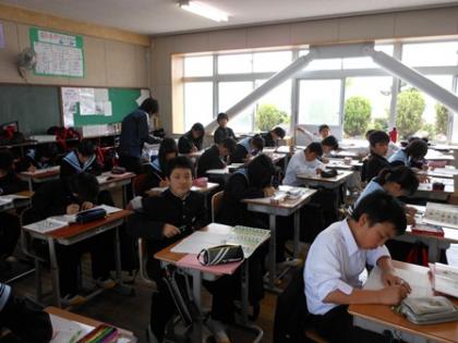 5月8日 2時限目の授業です。中学校にも慣れて少し緊張感も薄れてきました。でも、頑張っています。1Aは国語、1Bは英語、1Bは家庭です。