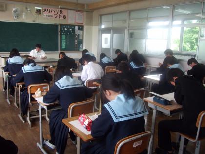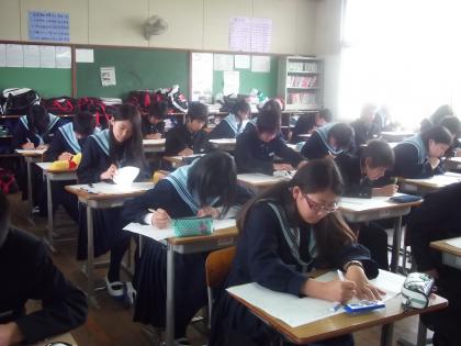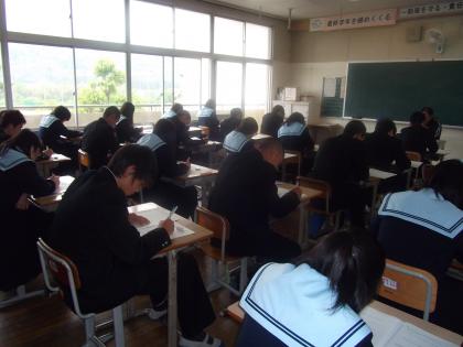5月8日(火) 3年生になっての1回目の実力テストの日です。3限目数学 みんな真剣に問題を解いています。