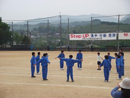 体育の授業では、生徒だけでランニングと体操を始めにします。