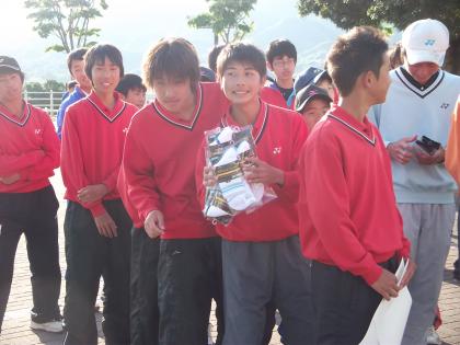 団体戦の結果は次のとおりです。賞状とテニスグッズをいただきました!