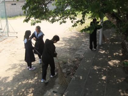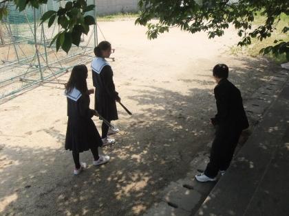 校外学習の話をしながらも、落ちてきた桜の花びらを拾い、ちゃんと箒で掃いていました。