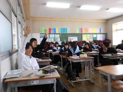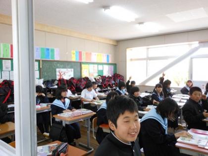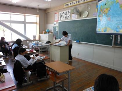 5時限目の授業です。社会係が前に出てテスト範囲を自分たちで学習しています。