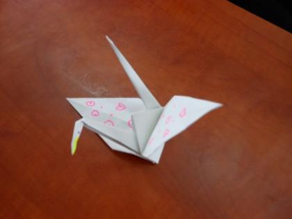 小さい鶴をたくさん折っています。