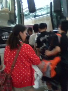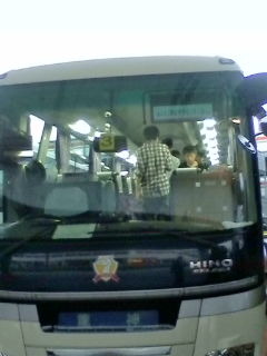 バスに乗り込みます。