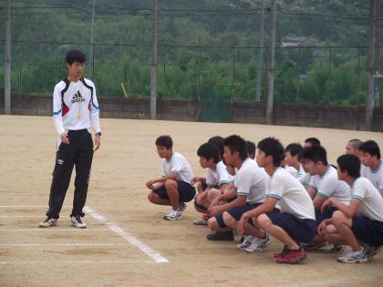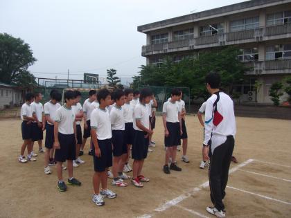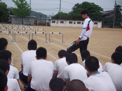 教育実習生授業 公開日 2012/06/12 更新日 2012/06/12 隅田中日記 3限目は3ABの男子体育を実習生の森本先生が「50mハードル」を行いました。 小雨降る中でしたが、タイムを一回計測しました。